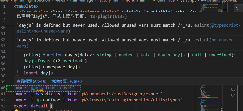 当引入了资源,而没有实际使用,代码编辑器以非高亮颜色展示,鼠标移到代码,会提示