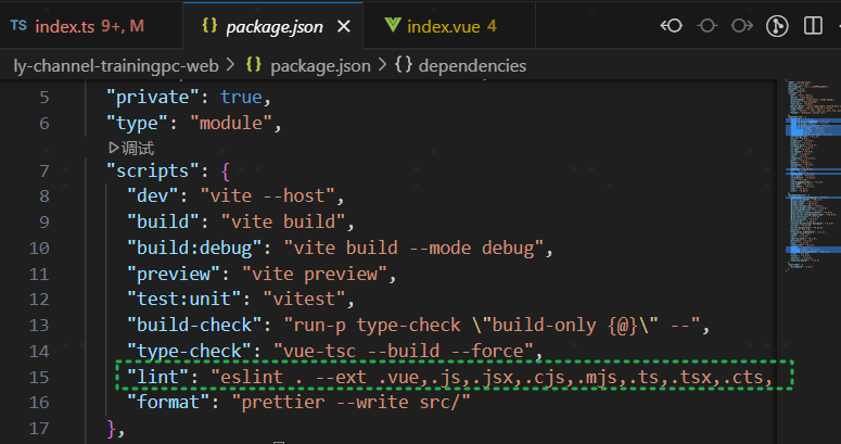 (一) 首先用命令执行一遍ESlint自动修复一些不符合规则的语法以及统一格式。配置lint脚本,即可使用npm run lint批量处理一波。