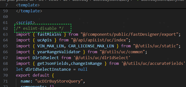 (二)对于某些不需要ESlint的页面,比如某些库你不想改动它,可使用eslint-disable忽略ESlint规则。